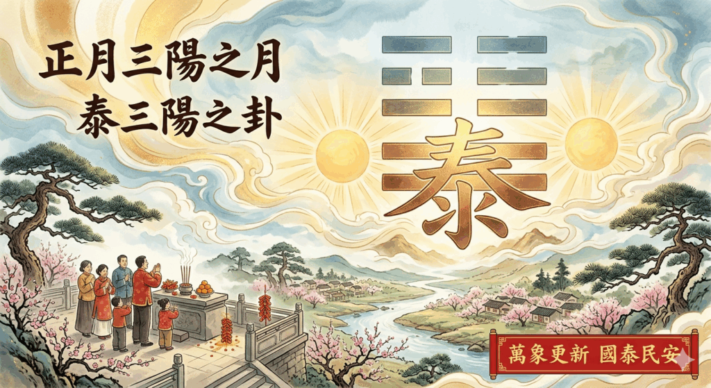 易篇。三陽交泰。正月之卦 Monthly trigram #11 Pervading (revised version)
