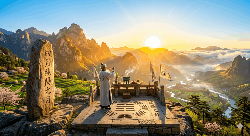 As time goes by, one yang line returns month by month until it reaches Si month 巳月, it is #1 hexagram Qian bagua for this month. Qian hexagram is with six yang lines which means at this month, the yang energy has already maximized.