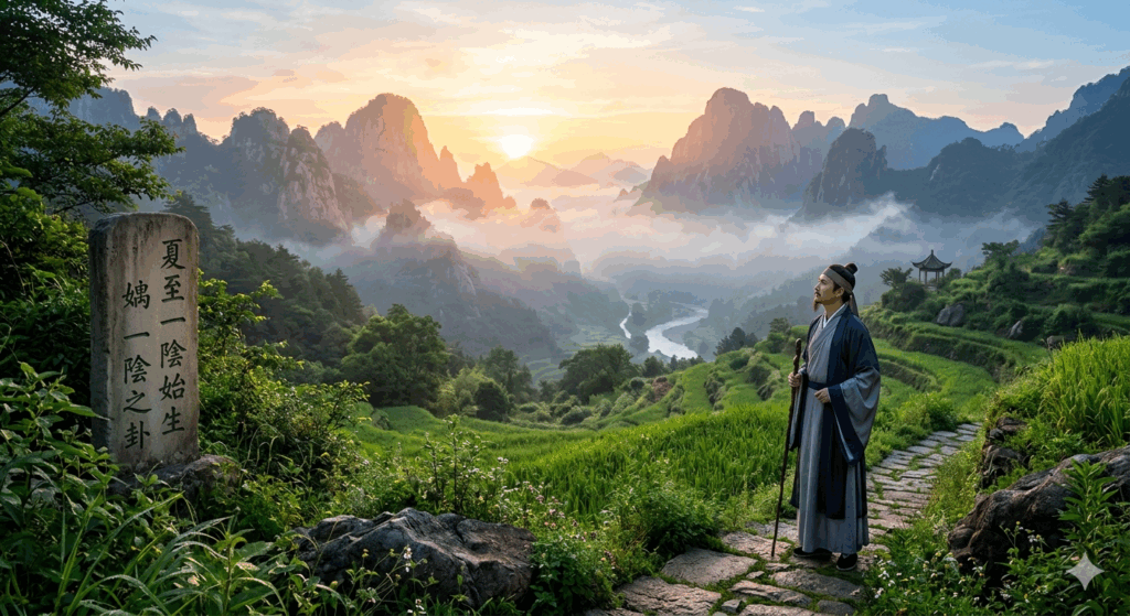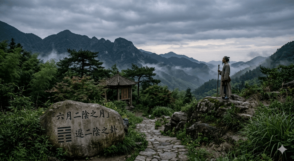 The sixth month and the last summer month is Wei. At this time, the sun and the moon are joining at the star sign Leo. The Big Dipper tail is pointing Wei direction. The monthly trigram is #33 Retiring and two yin lines are showing.