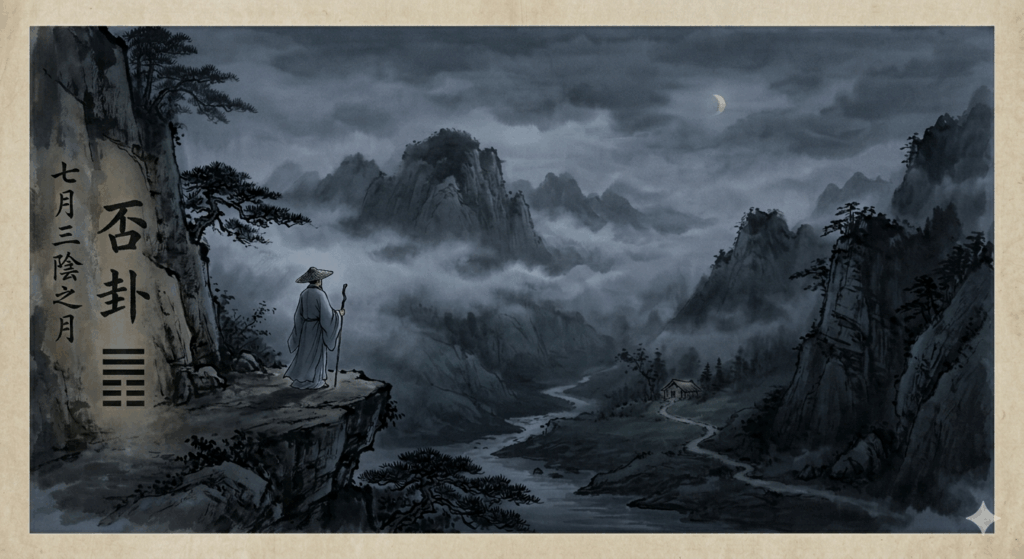 月令孟秋。鄭注曰孟秋者。日月會於鶉尾(處女座)。而斗建申之辰也。七月三陰之月。否三陰之卦。故以配之。
