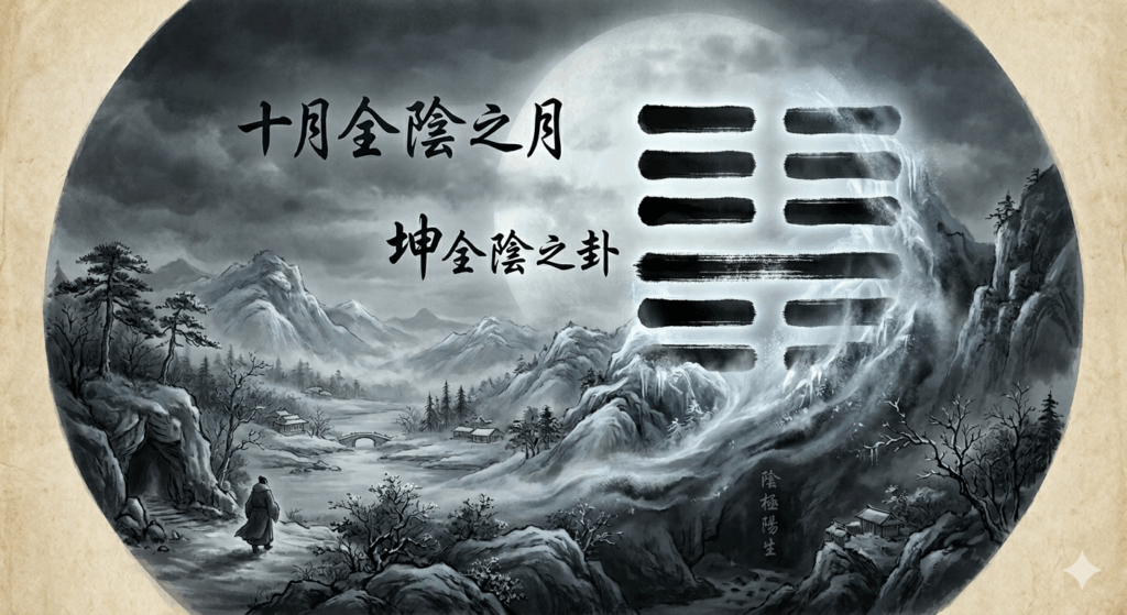 月令孟冬。鄭注曰孟冬者。日月會於析木(射手座)。而斗建亥之辰也。十月全陰之月。坤全陰之卦。故以配之。